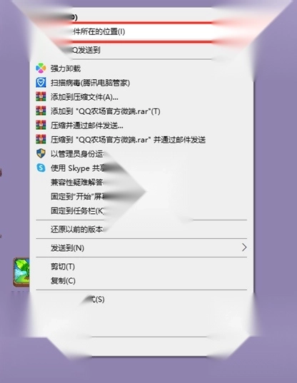1、在桌面找到【QQ农场微端】的快捷方式,右键点击它,然后选择【打开文件所在位置】,就能看到微端的所有相关文件了。
