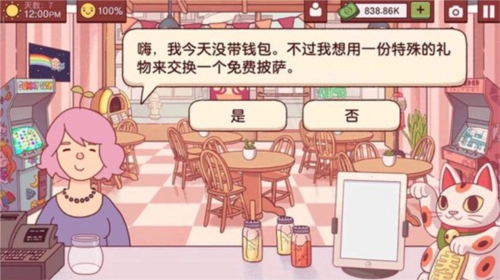 8、这个点热狗的顾客情况我也不太清楚,之前碰到他时,都是点“是”然后给他做芝士披萨,他说这不是热狗就离开了。但这次他生气地说这不是热狗,还扣了我20块钱。总之劝大家还是慎重考虑,我觉得最好不要点“是”。