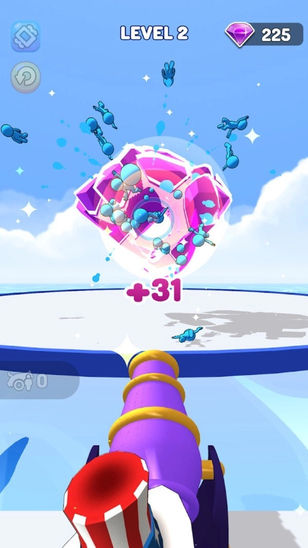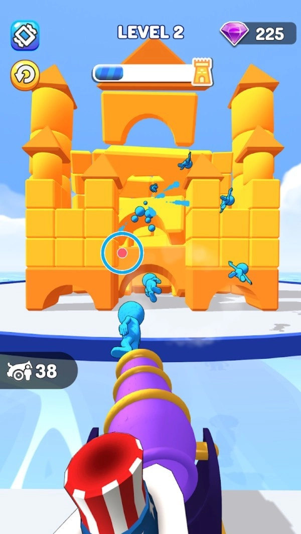 《人肉大炮》是一款趣味十足的休闲闯关游戏。游戏里,玩家得先跨越一道道障碍,在此过程中还要召集橡皮人壮大自己的队伍——橡皮人数量越多,后续能发射的人肉大炮就越多。等抵达炮筒处,就可以借助炮筒把橡皮人朝着城堡发射,最终将城堡彻底摧毁。