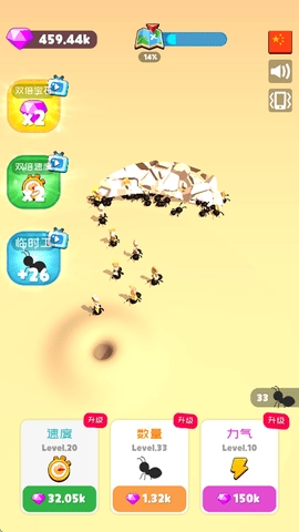 3、获取宝石能够提升蚁群的数量与能力,蚂蚁的规模也会慢慢扩大,从而满足你的成就感。