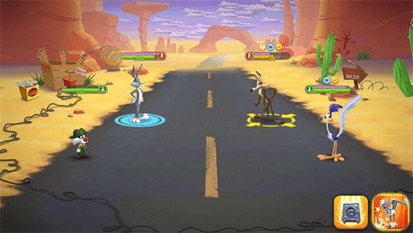 游戏采用回合制对战模式,战斗时要依据角色的特性(比如输出、辅助、控制类型)来合理规划技能释放的先后顺序,同时搭配不同角色之间的协同效果,以此来战胜敌方队伍。角色的技能设计充满了动画式的恶搞风格,像太菲鸭的保险箱砸击、巨型铁砧攻击这类技能,让打击感和趣味性都达到了很高的程度。当死对头组合(例如傻大猫与崔弟、歪心狼与哔哔鸟)对战取得胜利时,能够额外获得奖金,这增强了玩家收集角色的动力。游戏里可以收集兔巴哥、艾默小猎人、火星人玛文等数十个经典角色,每个角色都有独特的技能和属性,并且分为不同的稀有度和定位。养成体系涵盖了等级提升、技能升级、装备强化等方面,玩家可以通过战斗、完成任务来获取资源,还能够派遣角色去执行任务,以此积累养成所需的材料。