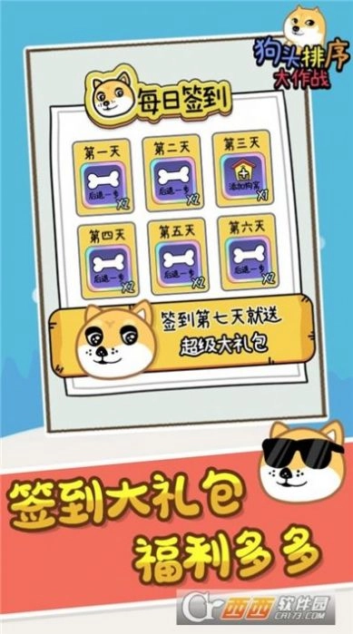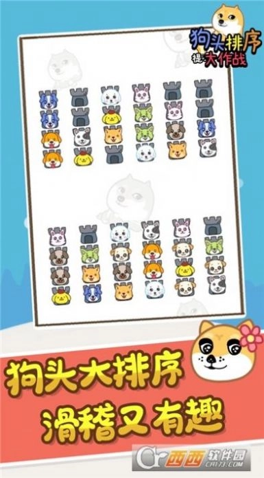 1、有很多可爱的狗头需要你来排序,每关需要排序的狗头数量都不同。
