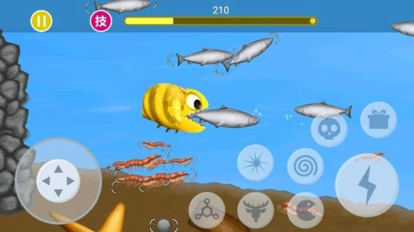 2、通过捕食体型小于自身的海洋生物来壮大身躯,快速提升等级,达成你的进化目标。