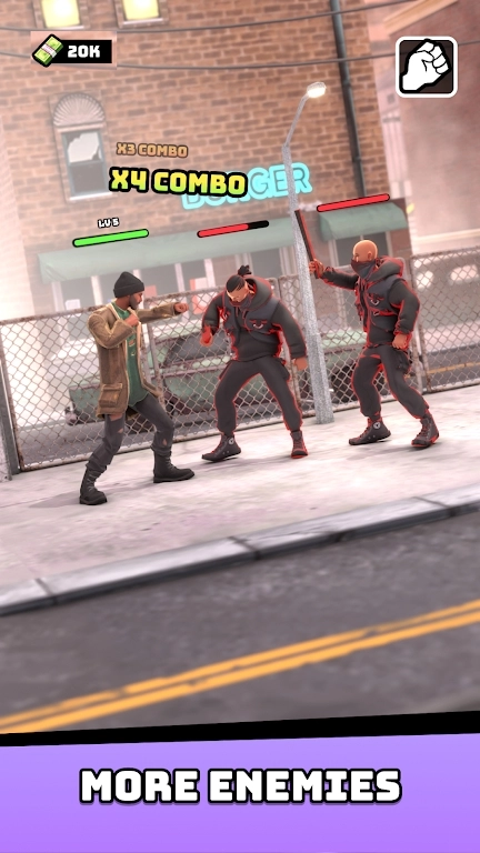 在街头冒险的过程里,玩家会碰到各类敌人的突然袭击,得依靠精准的操作和格斗方面的技巧来打倒对手。每一次战胜敌人都能得到金币作为奖励,这些金币可以用来购买和提升角色的能力,从基础攻击的加强到特殊技能的开启,一步步塑造出专属于自己的格斗强者,在持续的挑战中感受成长以及战斗带来的乐趣。