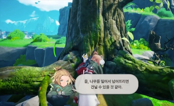 2、可以将前方的大树推倒,就能沿着大树一直往前走。