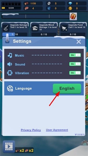 2、接着点击language选项,从中选择English来切换语言。