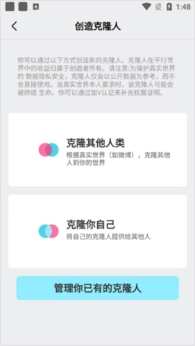 4、应用中还可以在发现页面中创建克隆人,可以克隆他人也可以克隆自己。