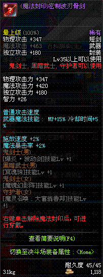 | 35 | (魔法封印)密制波刃骨剑 | *Lv34~41普通地下城怪物掉落 |
