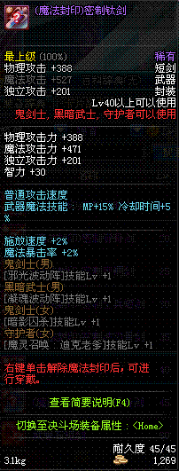 | 40 | (魔法封印)密制钛剑 | *Lv39~46普通地下城怪物掉落 *完成[变异的美神恩泽]任务 *使用Lv39~46怪物掉落的设计图进行制作 |