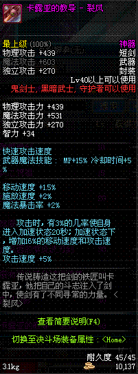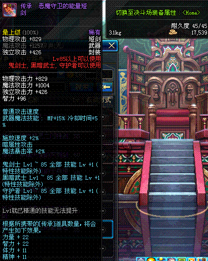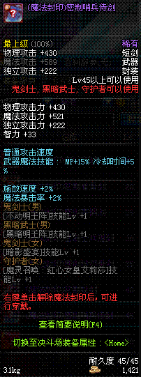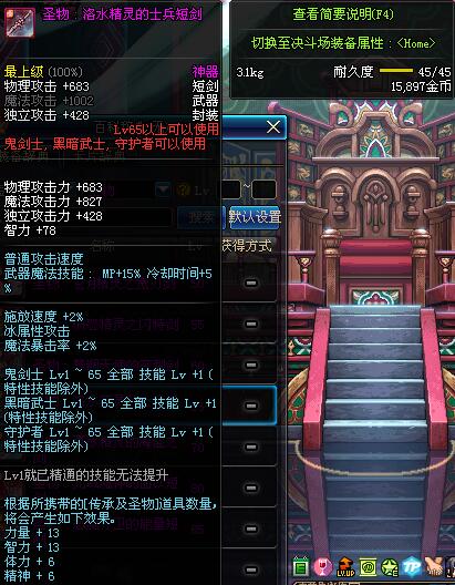 | 辅助装备: | 全职业 鬼剑士 女鬼剑 女格斗 男格斗 神枪手 女枪手 魔法师 男法师 圣职者 暗夜使者 守护者 |