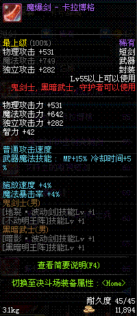 | 50 | 邪灵饮血剑 | *Lv50~56普通地下城怪物掉落 *在加百利的神秘商店购买 |