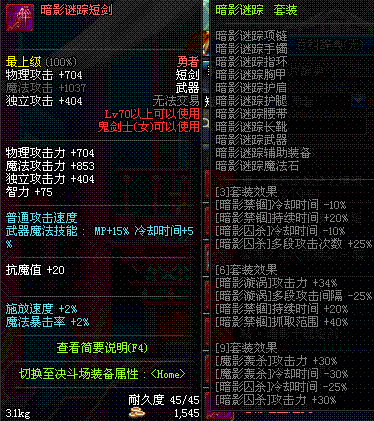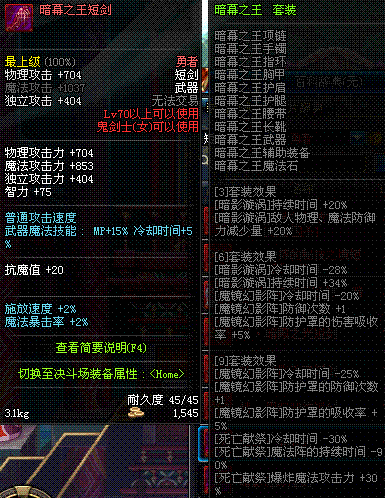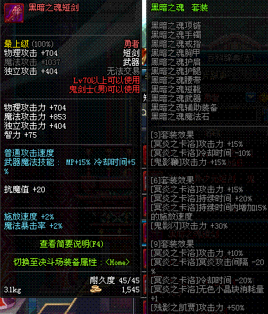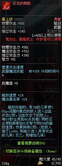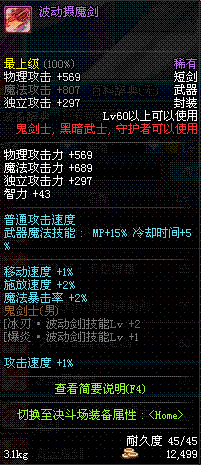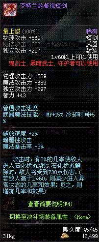 | 60 | 布鲁之怨灵短剑 | *Lv64~71深渊地下城怪物掉落 *在NPC沉默之克雷娅的物品店购买 |