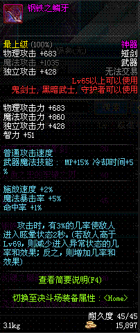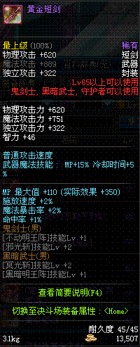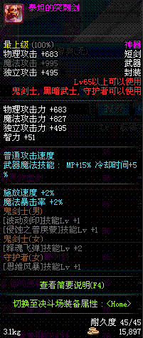 | 65 | 泰坦的突刺剑 | *Lv65~71普通地下城怪物掉落 *在加百利的神秘商店购买 |
