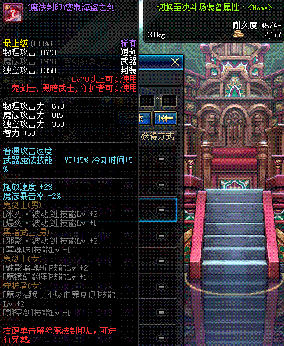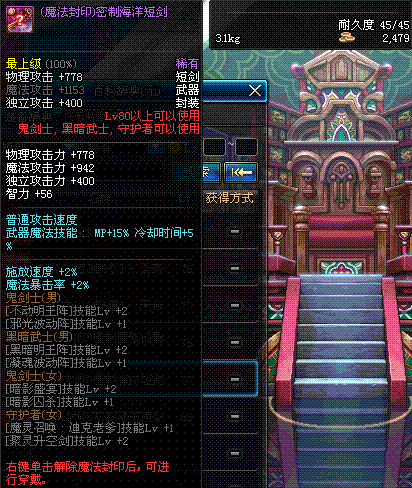 | 80 | (魔法封印)密制海洋短剑 | *Lv80~86普通地下城怪物掉落 |