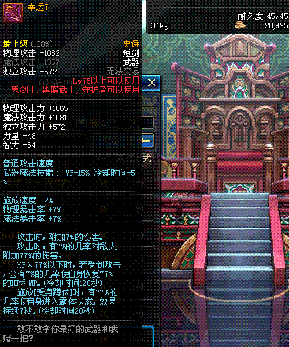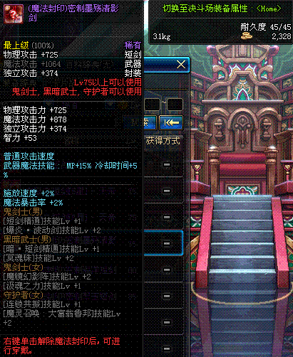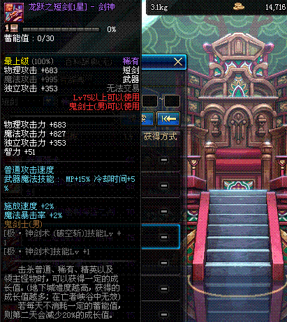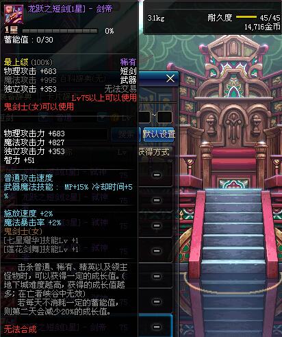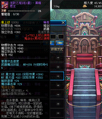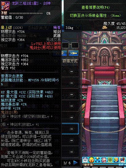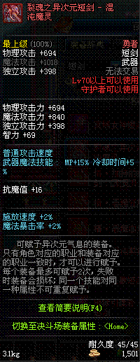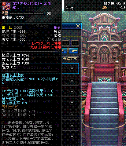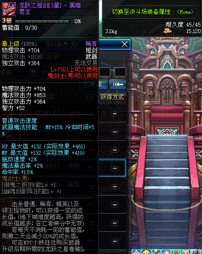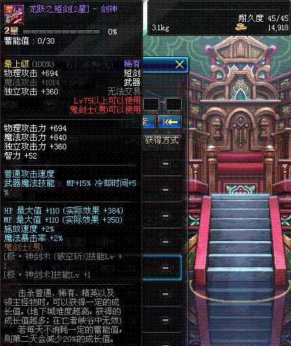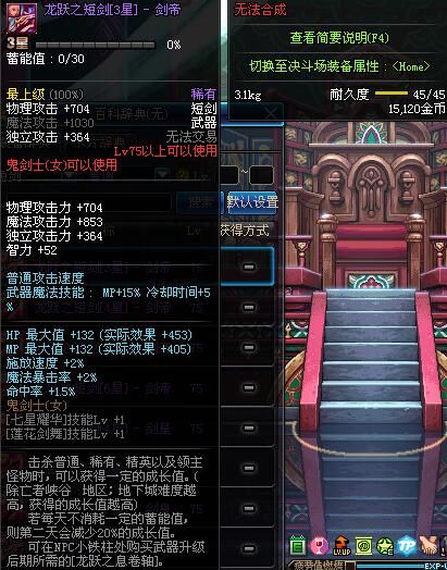 | 75 | 龙跃之短剑[3星] - 剑皇 | *完成二次觉醒任务后可以从NPC小铁柱处获得此道具。 | ||