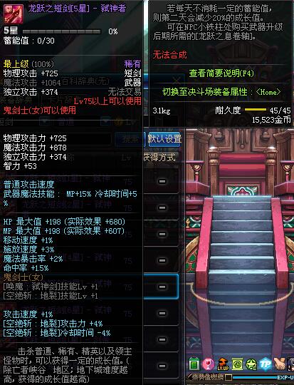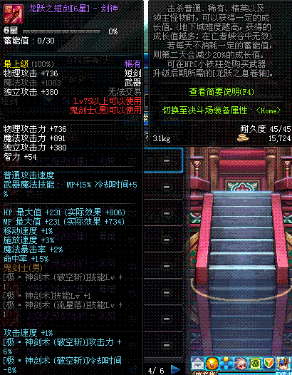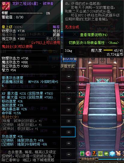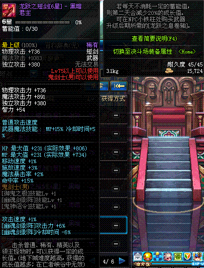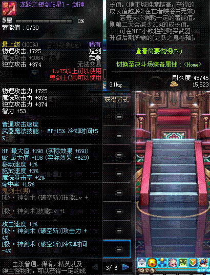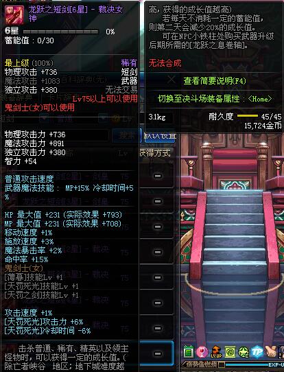 | 75 | 龙跃之短剑[6星] - 弑神者 | *完成二次觉醒任务后可以从NPC小铁柱处获得此道具。 | ||