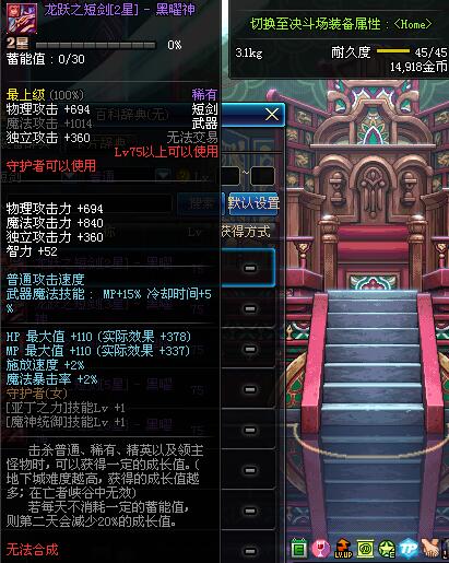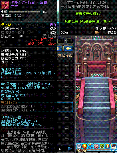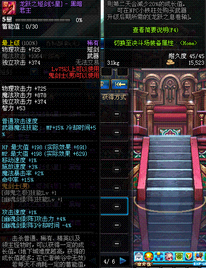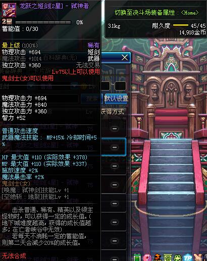 | 75 | 龙跃之短剑[4星] - 弑神者 | *完成二次觉醒任务后可以从NPC小铁柱处获得此道具。 | ||