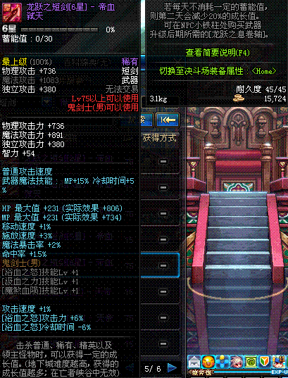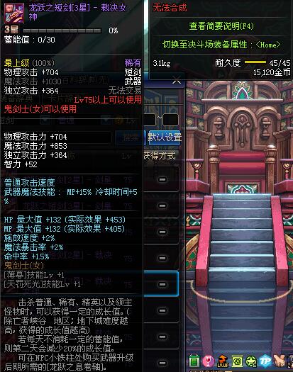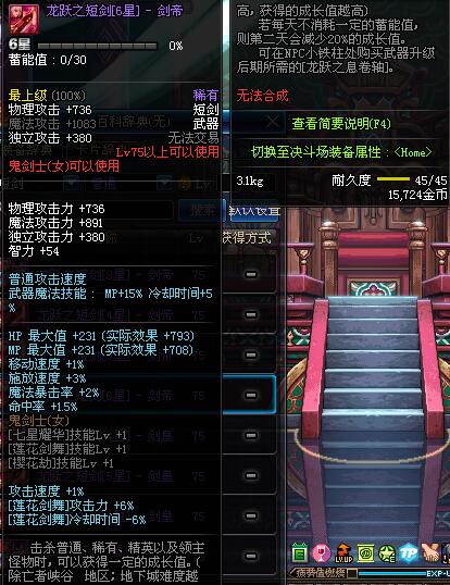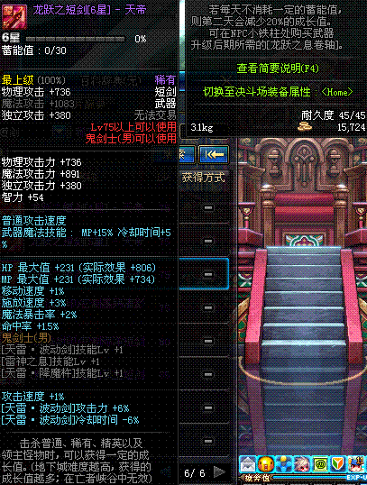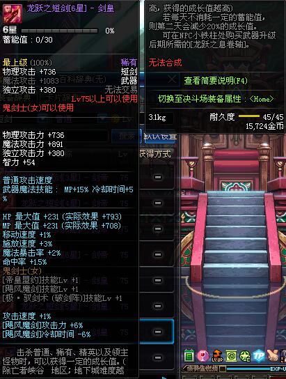 | 75 | 龙跃之短剑[6星] - 剑帝 | *完成二次觉醒任务后可以从NPC小铁柱处获得此道具。 | ||