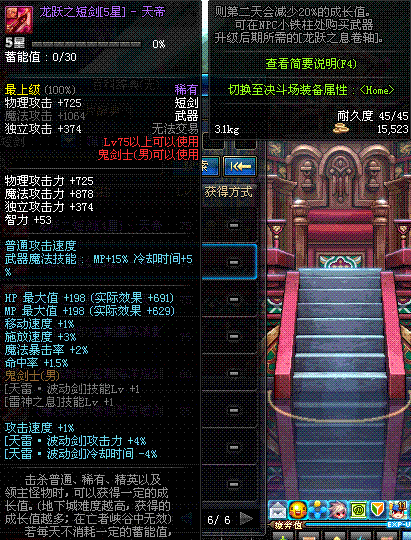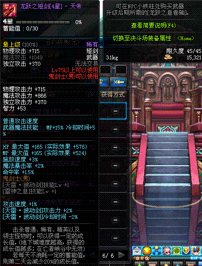 | 75 | 龙跃之短剑[6星] - 天帝 | *完成二次觉醒任务后可以从NPC小铁柱处获得此道具。 | ||