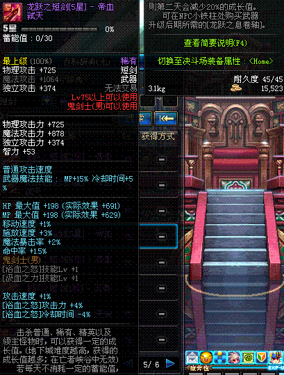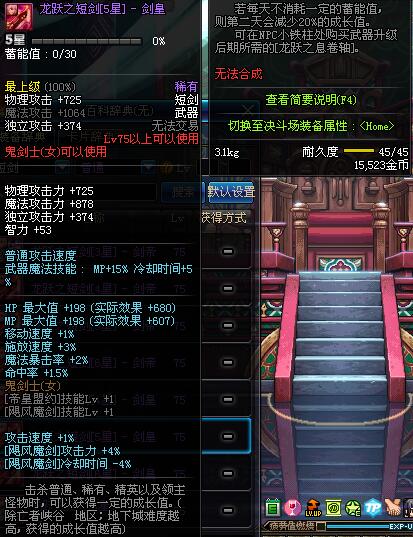 | 75 | 龙跃之短剑[5星] - 剑帝 | *完成二次觉醒任务后可以从NPC小铁柱处获得此道具。 | ||