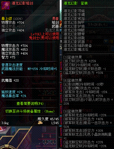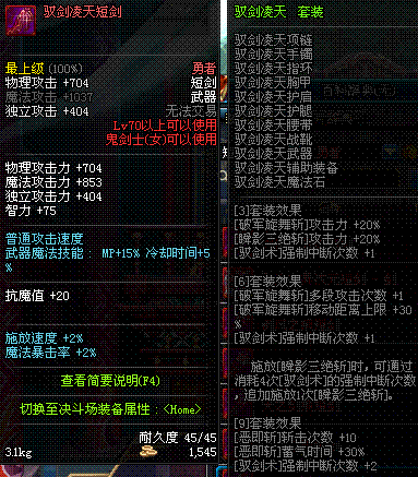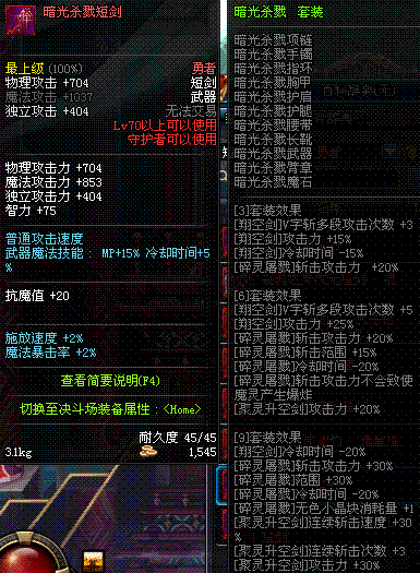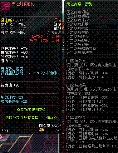 | 70 | 天道之修罗剑 | *Lv70~76普通地下城怪物掉落 *在加百利的神秘商店购买 |