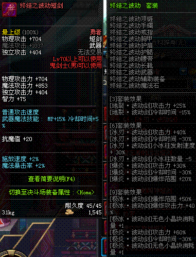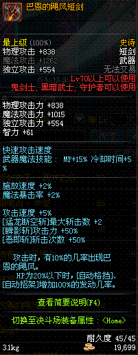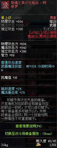 | 70 | 巴恩的飓风短剑 | *巴恩 掉落(在时空之门地区的深渊地下城里有一定几率出没。) | * 剑魂/驭剑士 | |
