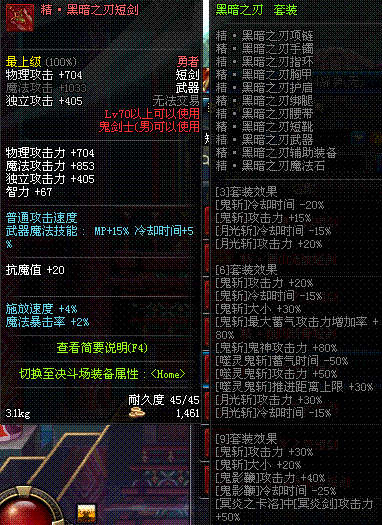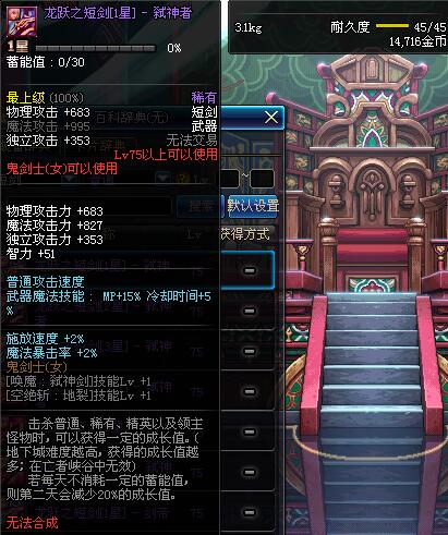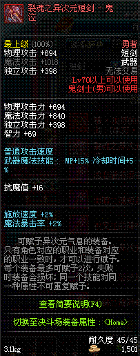 | 45 | 虚空螳螂短剑 | *Lv45~51普通地下城怪物掉落 *在加百利的神秘商店购买 |