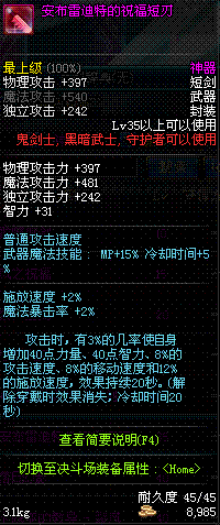 | 35 | 安布雷迪特的祝福短刃 | *Lv34~41普通地下城怪物掉落 *在加百利的神秘商店购买 |