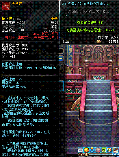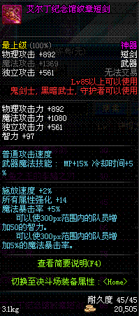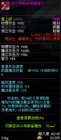 | 85 | 凯尔索斯的智慧短刃 | *Lv85~91普通地下城怪物掉落 *在加百利的神秘商店购买 |