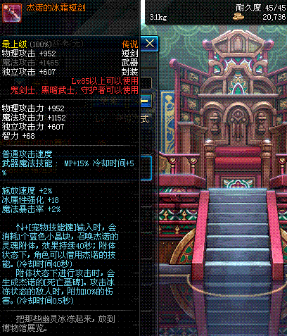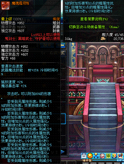 | 85 | 魔魂霜月残 | *吞噬魔 掉落(地下城: 黑雾之源 2图) *设计图(地下城: 黑雾之源 登场的NPC加百利 出售) |