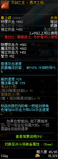| 55 | 万剑之王 - 西方之焰 | *Lv54~61深渊地下城怪物掉落 *在NPC沉默之克雷娅的物品店购买 |
