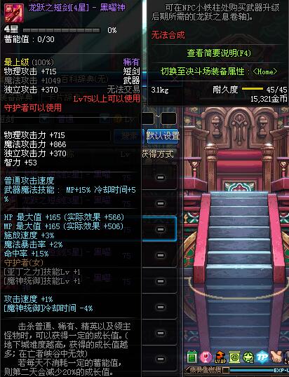 | 75 | 龙跃之短剑[4星] - 黑曜神 | *完成二次觉醒任务后可以从NPC小铁柱处获得此道具。 | ||