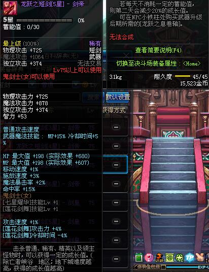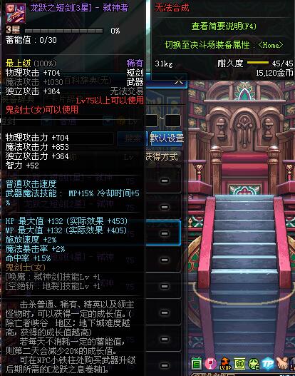 | 75 | 龙跃之短剑[3星] - 剑帝 | *完成二次觉醒任务后可以从NPC小铁柱处获得此道具。 | ||