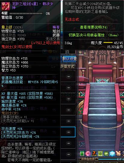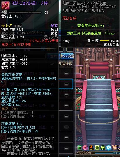 | 75 | 龙跃之短剑[2星] - 天帝 | *完成二次觉醒任务后可以从NPC小铁柱处获得此道具。 | ||