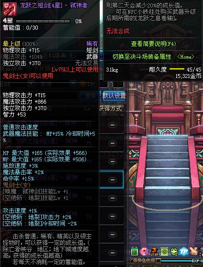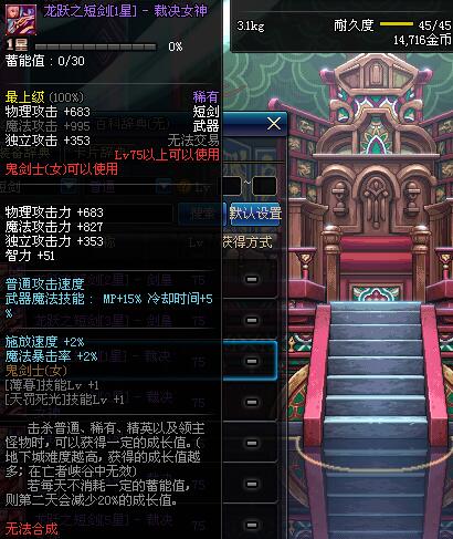 | 75 | 龙跃之短剑[1星] - 弑神者 | *完成二次觉醒任务后可以从NPC小铁柱处获得此道具。 | ||