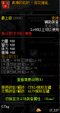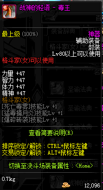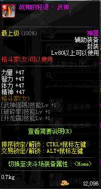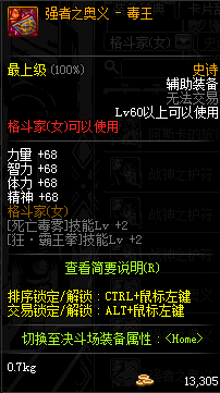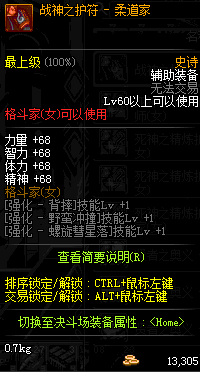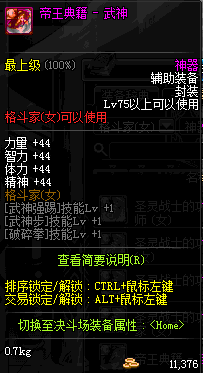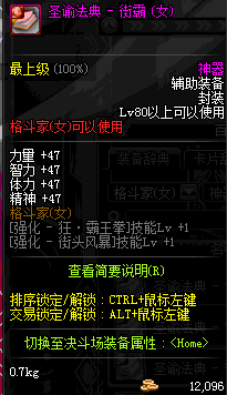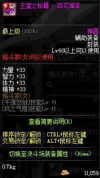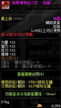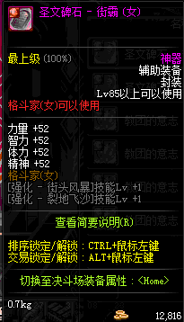| 辅助装备: | 全职业 鬼剑士 女鬼剑 女格斗 男格斗 神枪手 女枪手 魔法师 男法师 圣职者 暗夜使者 守护者 |