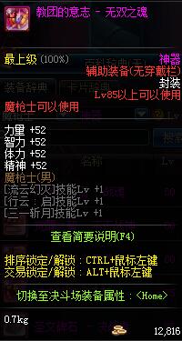 | 辅助装备: | 全职业 鬼剑士 女鬼剑 女格斗 男格斗 神枪手 女枪手 魔法师 男法师 圣职者 暗夜使者 守护者 |