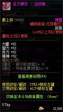 | 魔法石: | 全职业 鬼剑士 女鬼剑 女格斗 男格斗 男枪手 女枪手 魔法师 男法师 圣职者 暗夜使者 守护者 魔枪师 |