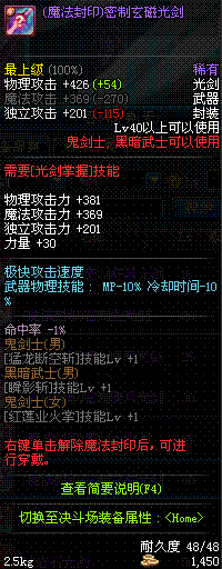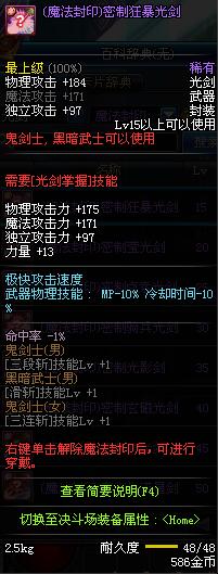 | 15 | (魔法封印)密制狂暴光剑 | *Lv13~21普通地下城怪物掉落 *完成[专职贺礼]任务 |