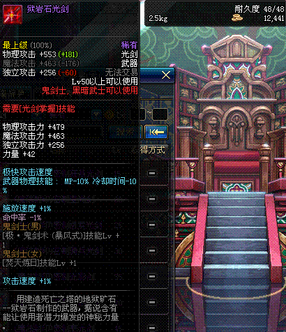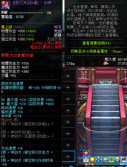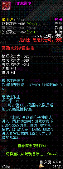 | 50 | 双龙魔影剑 | *Lv50~56普通地下城怪物掉落 *在加百利的神秘商店购买 |