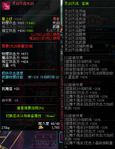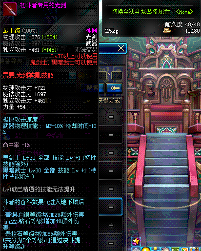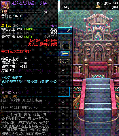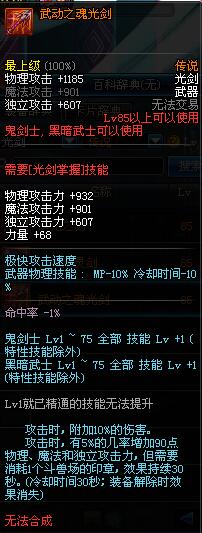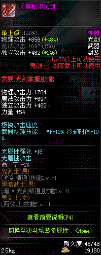 | 70 | 天痕秘印光剑 | *Lv70~76普通地下城怪物掉落 *在加百利的神秘商店购买 |