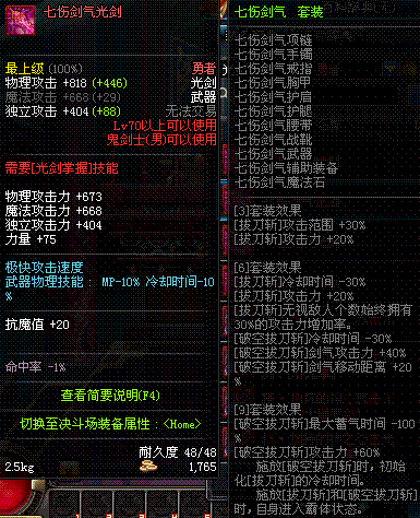 | 70 | 七伤剑气光剑 | |||