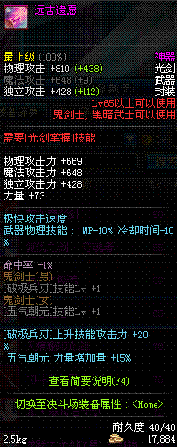 | 辅助装备: | 全职业 鬼剑士 女鬼剑 女格斗 男格斗 神枪手 女枪手 魔法师 男法师 圣职者 暗夜使者 守护者 |