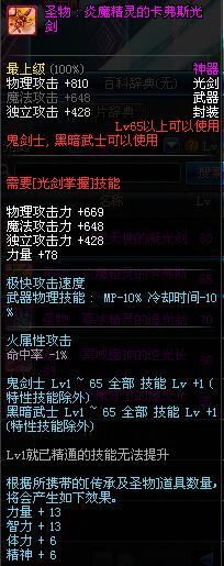 | 65 | 圣物 : 炎魔精灵的卡弗斯光剑 | *Lv65~71普通地下城怪物掉落 |