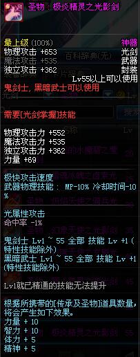| 55 | 圣物 : 极炎精灵之光影剑 | *Lv53~61普通地下城怪物掉落 |