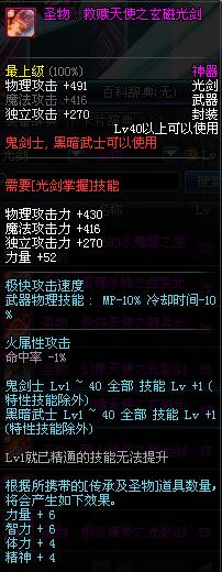 | 40 | 圣物 : 救赎天使之玄磁光剑 | *Lv39~46普通地下城怪物掉落 |