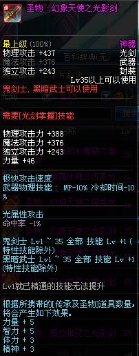 | 35 | 圣物 : 幻象天使之光影剑 | *Lv34~41普通地下城怪物掉落 |