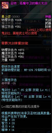 | 85 | 圣物 : 恶魔守卫的爆炎光剑 | *Lv85~91普通地下城怪物掉落 | ||