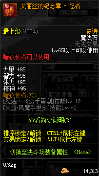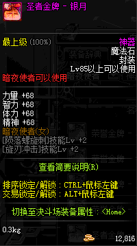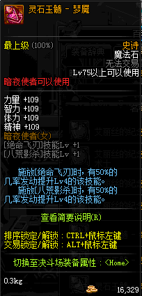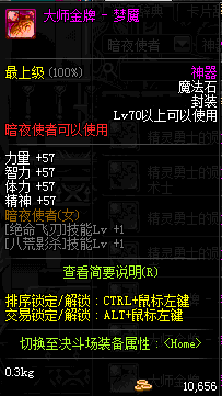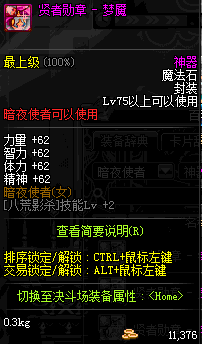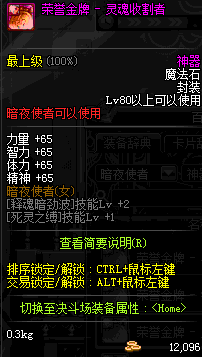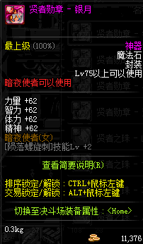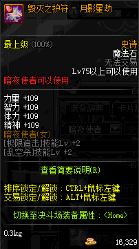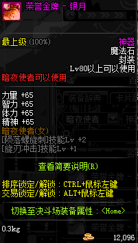 | 辅助装备: | 全职业 鬼剑士 女鬼剑 女格斗 男格斗 神枪手 女枪手 魔法师 男法师 圣职者 暗夜使者 守护者 |