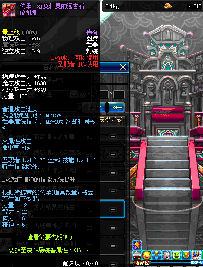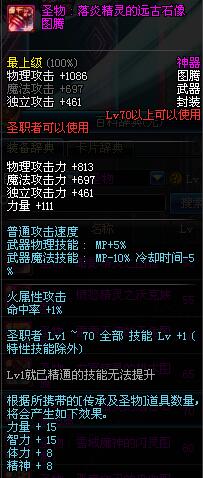 | 70 | 圣物 : 落炎精灵的远古石像图腾 | *Lv70~76普通地下城怪物掉落 |